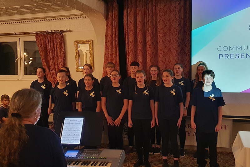 16 groups from the Redruth area were represented, and were entertained by 30 beautiful voices from RAOSTys – the youth section of Redruth Amateur Operatic Society Trust – and the presentations were compered by Trustee Alan Jewell.